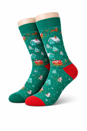 Cozy up this holiday season with our Green Christmas Cabin socks. Featuring a festive design of snow-dusted cabins nestled among evergreen trees, these socks bring warmth and seasonal charm to your everyday look. Perfect for gift-giving or treating yourself, they're an ideal addition to any holiday wardrobe. Soft, comfortable, and bursting with festive spiritβyour feet will thank you.