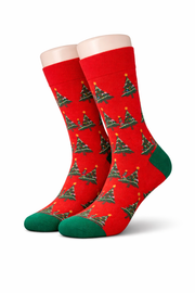 Festive red socks featuring a cheerful Christmas tree design, perfect for holiday celebrations and gift-giving. Crafted with comfort in mind, these socks bring seasonal spirit to your everyday wardrobe. Ideal for pairing with casual outfits or gifting to friends and family who love holiday cheer. Make every step merry and bright this season.