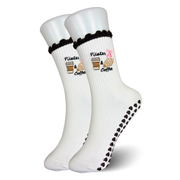 Elevate your Pilates practice with socks designed for those who live for both fitness and caffeine. These charming grip socks feature a playful "Pilates and Coffee" design complete with a croissant and coffee cup—a perfect nod to your pre-workout ritual. The non-slip sole keeps you grounded and stable during every pose, plank, and stretch, while the soft, breathable fabric ensures comfort through your entire session. Whether you're a devoted Pilates enthusiast or simply appreciate the finer things in life, these socks combine style, functionality, and personality in one delightful package.