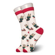 High quality white cotton Christmas socks with Reindeers and Stockings on them.