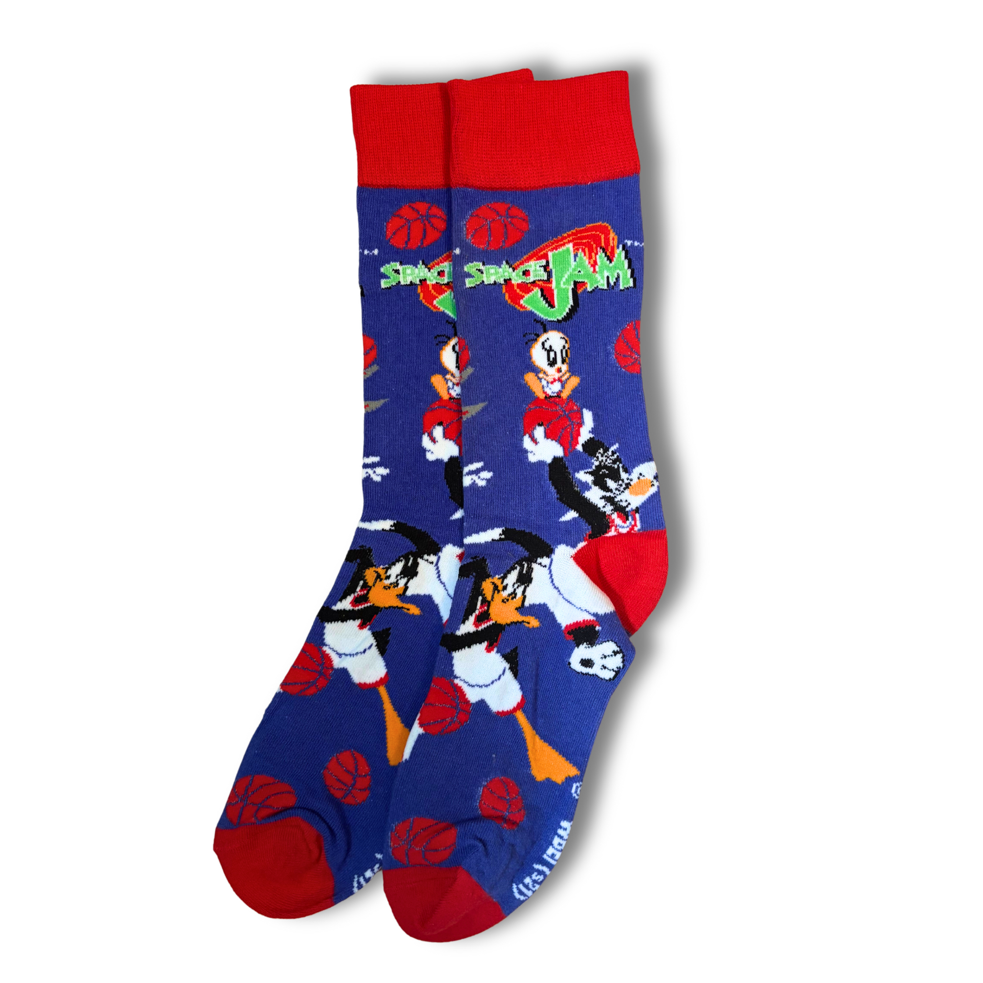 Step into the cartoon cosmos with these Purple Space Jam Socks! Featuring your favorite Space Jam characters, they add fun and flair to every step. Perfect for fans who want to show off their playful side while keeping feet cozy and stylish. Let your feet dunk in comfort and nostalgia all day long!