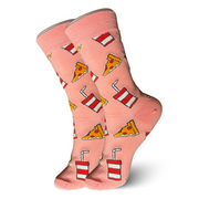 Add some flavor to your sock collection with our Pink Pizza and Soda Socks! These socks are the perfect combination of fun and comfort, featuring a playful design of pizza slices and soda cans. Indulge in comfort and style with these quirky socks.