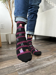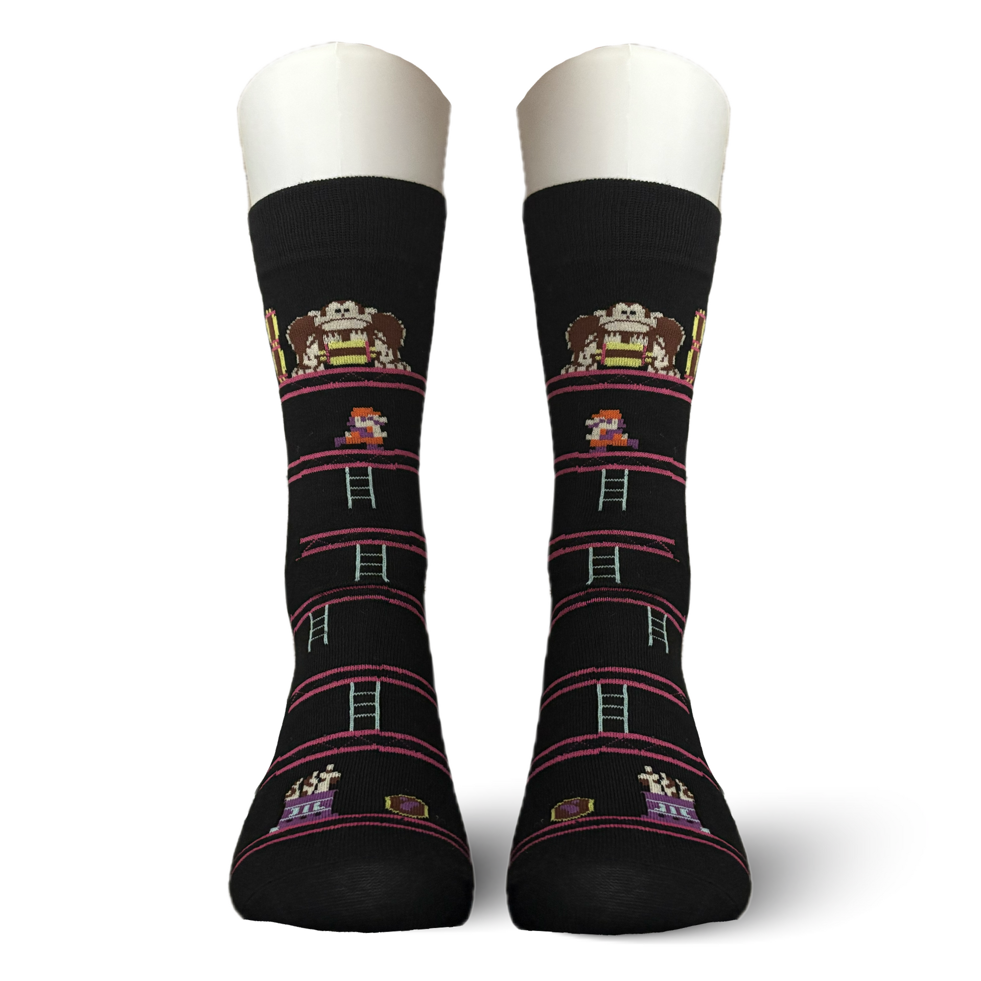Step up your sock game with our Black DK 64 Socks! Inspired by the classic game, these socks come in a bold black color and feature iconic Nintendo 64 elements such as saving princesses and collecting barrels. Stay stylish and nostalgic at the same time!