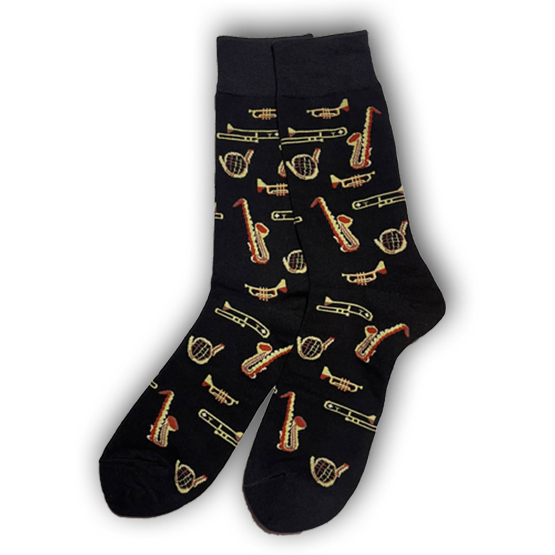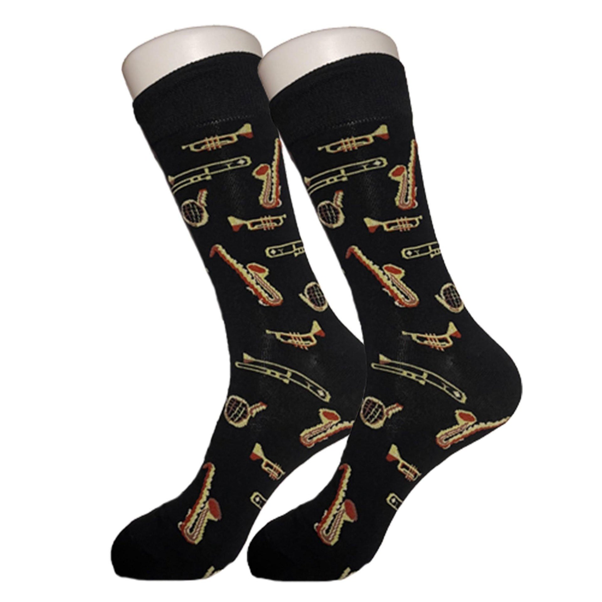 Its a SOCKS-O-phone get it? High quality black cotton socks with trumpets on them.