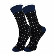 Add some spotty fun to your sock game with our Black White Polka Dot Socks. These black socks feature white polka dots, perfect for adding a playful touch to any outfit. Step up your sock style now!