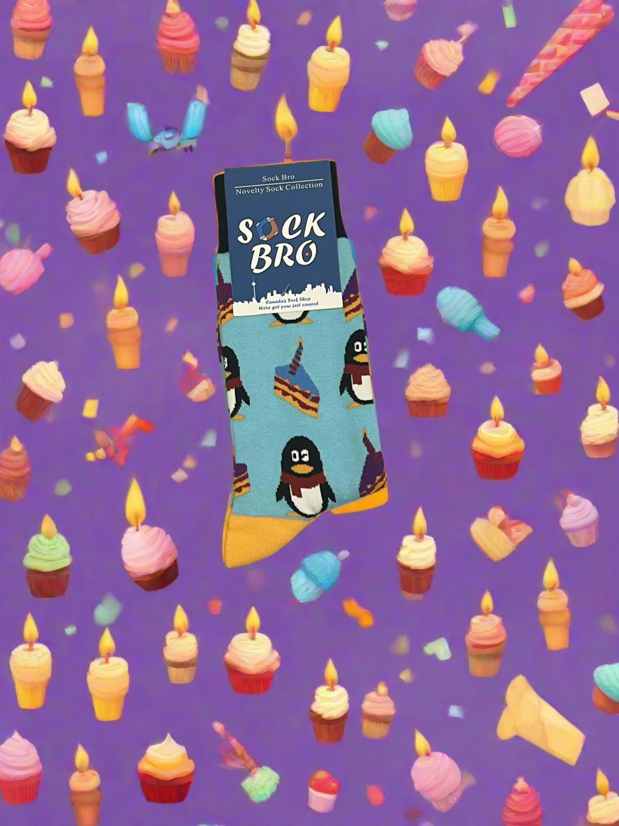 Celebrate in style with our Blue Birthday Penguin Socks! Featuring playful penguins and a festive cake design, these socks are a perfect gift for the fun-loving, quirky person in your life. Keep your feet cozy and add some humor to your wardrobe with these unique, colorful socks.