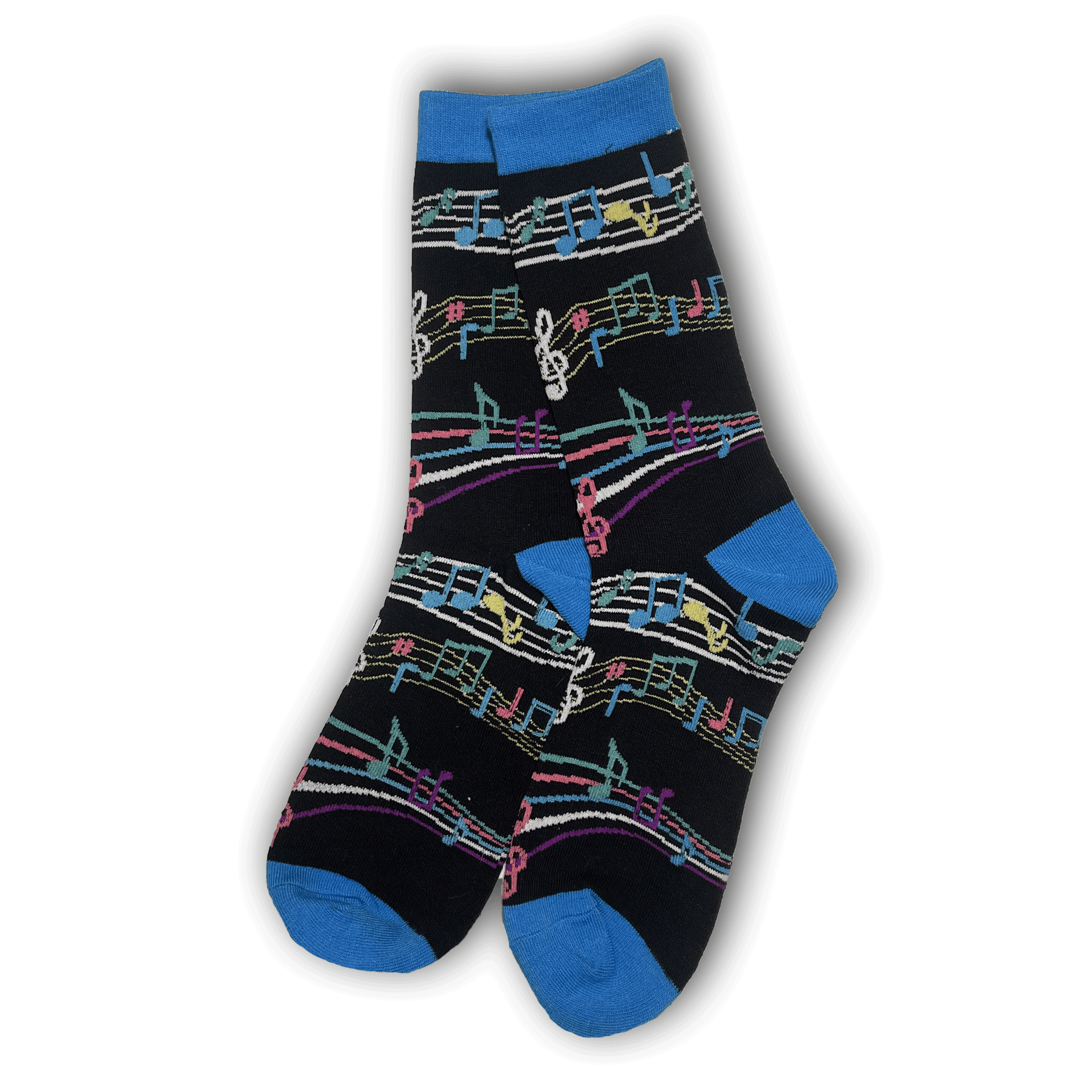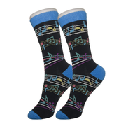 Hit that high note with these great socks! High quality blue and black cotton socks with music notes on them.