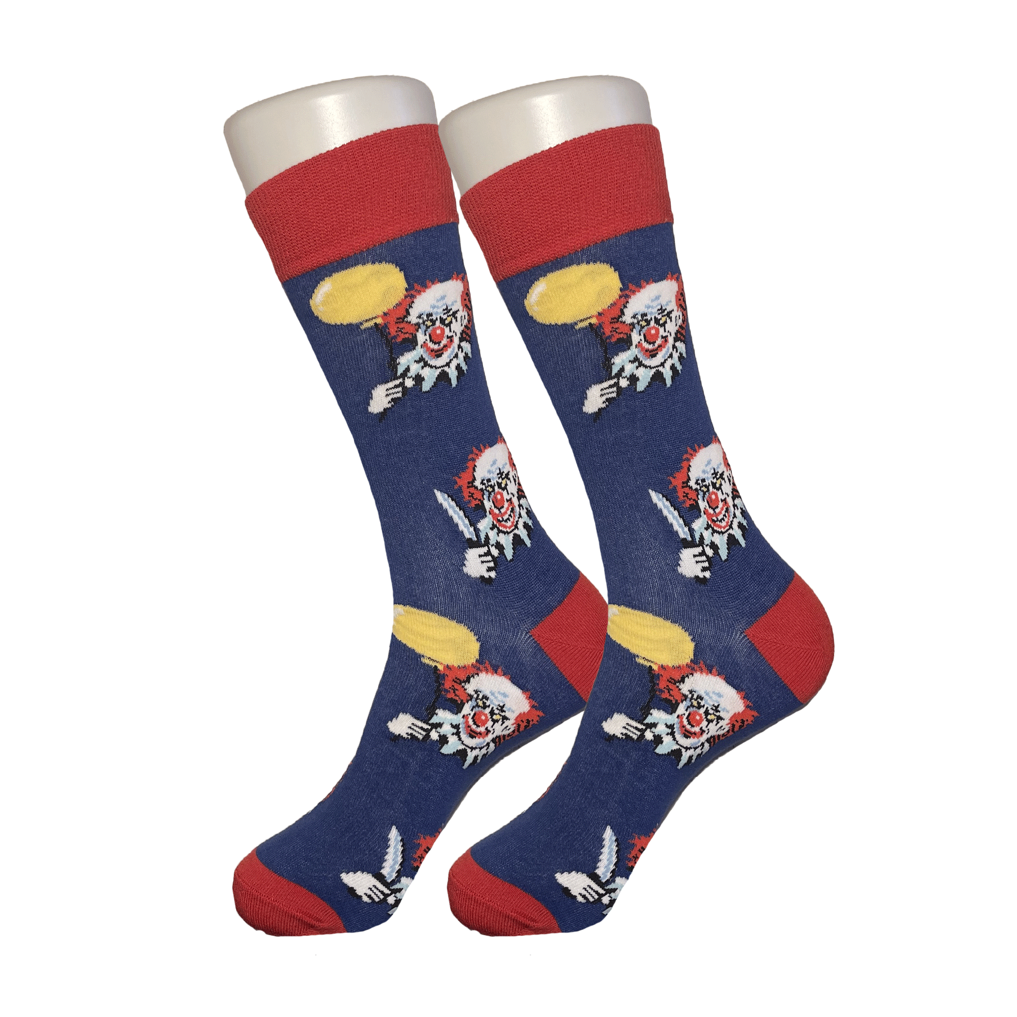 High quality blue cotton socks with Clowns on them.