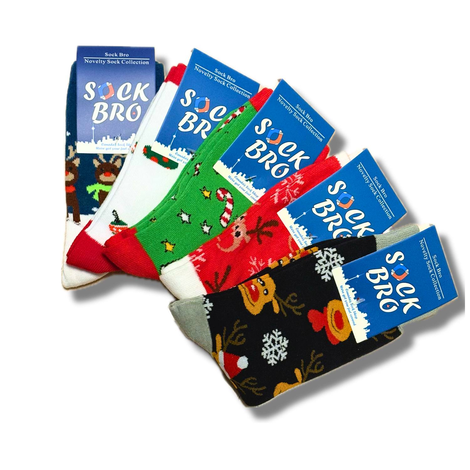 Contains 5 pairs of high quality Sock Bro Christmas socks.