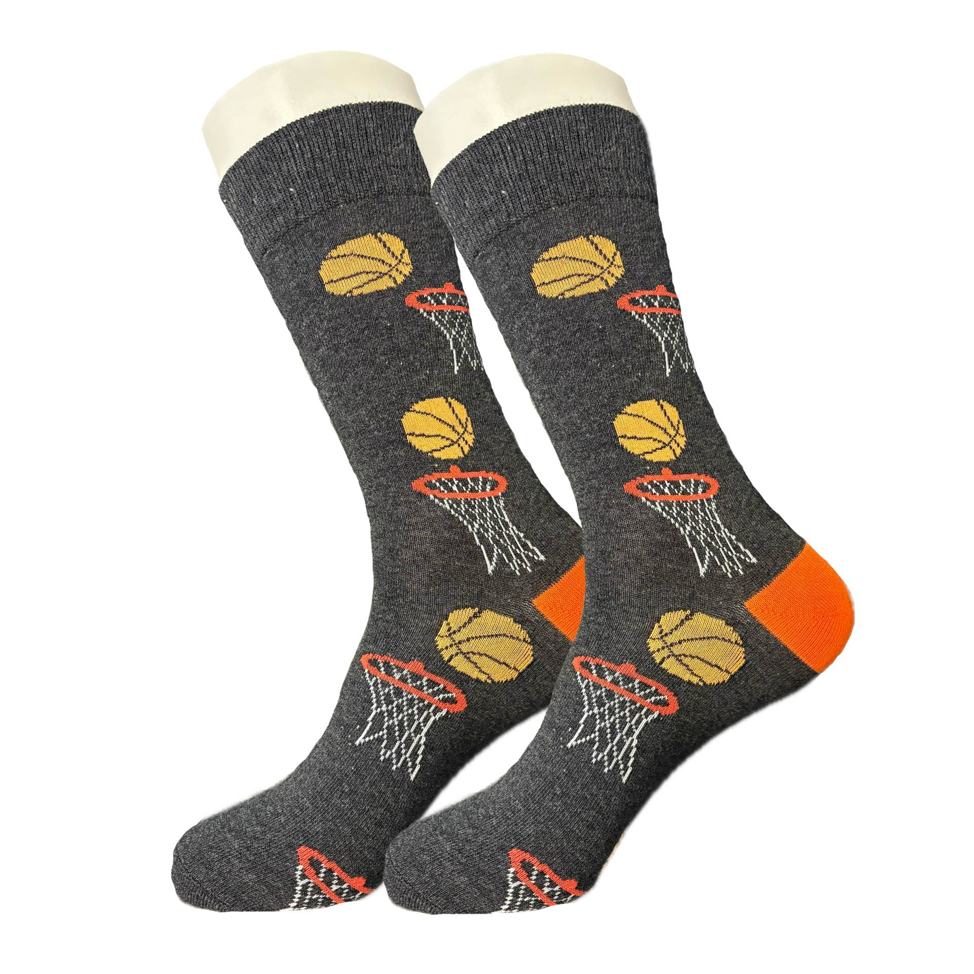 Score style points on and off the court with our Grey Basketball Hoop Socks! Featuring a classic grey design with basketballs and hoops, these socks are slam-dunkin' good. Perfect for b-ball lovers, these socks will have you feeling like the MVP. 🏀