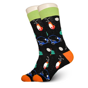 These socks are the best by par. High quality black cotton socks with golf bags, golf balls, golf carts and putting green.