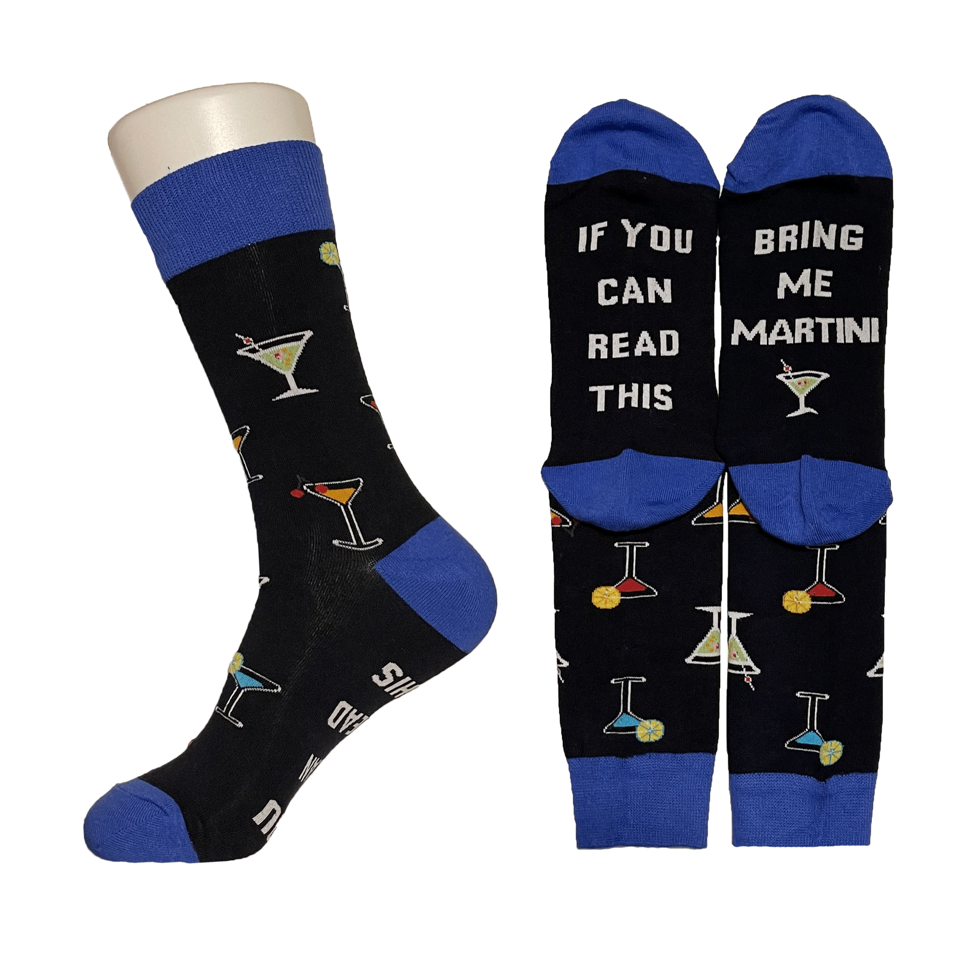 Aruba, Jamaica, girl i'm gunna take ya.Ð?�÷ High quality black socks with mixed color martinis, and "If you can read this - bring me Martini" on the bottom.