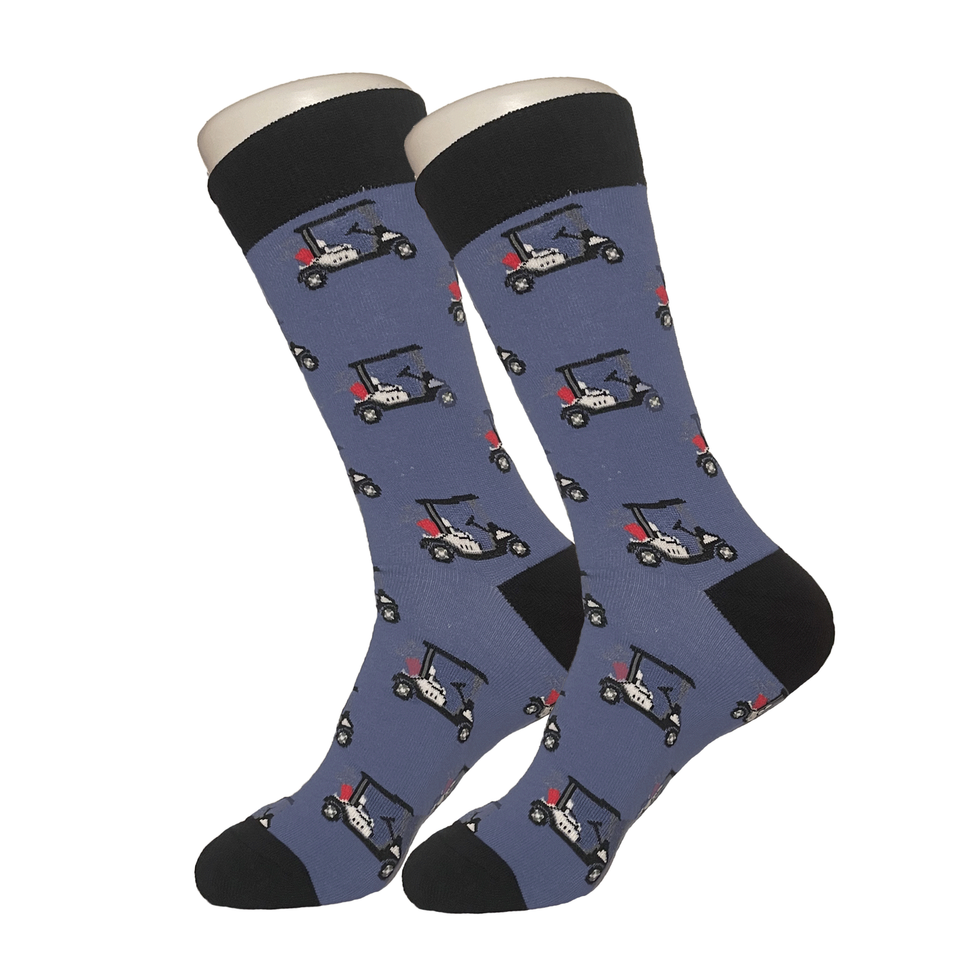 These are definitely a hole in one. High quality blue socks with golf carts on them.