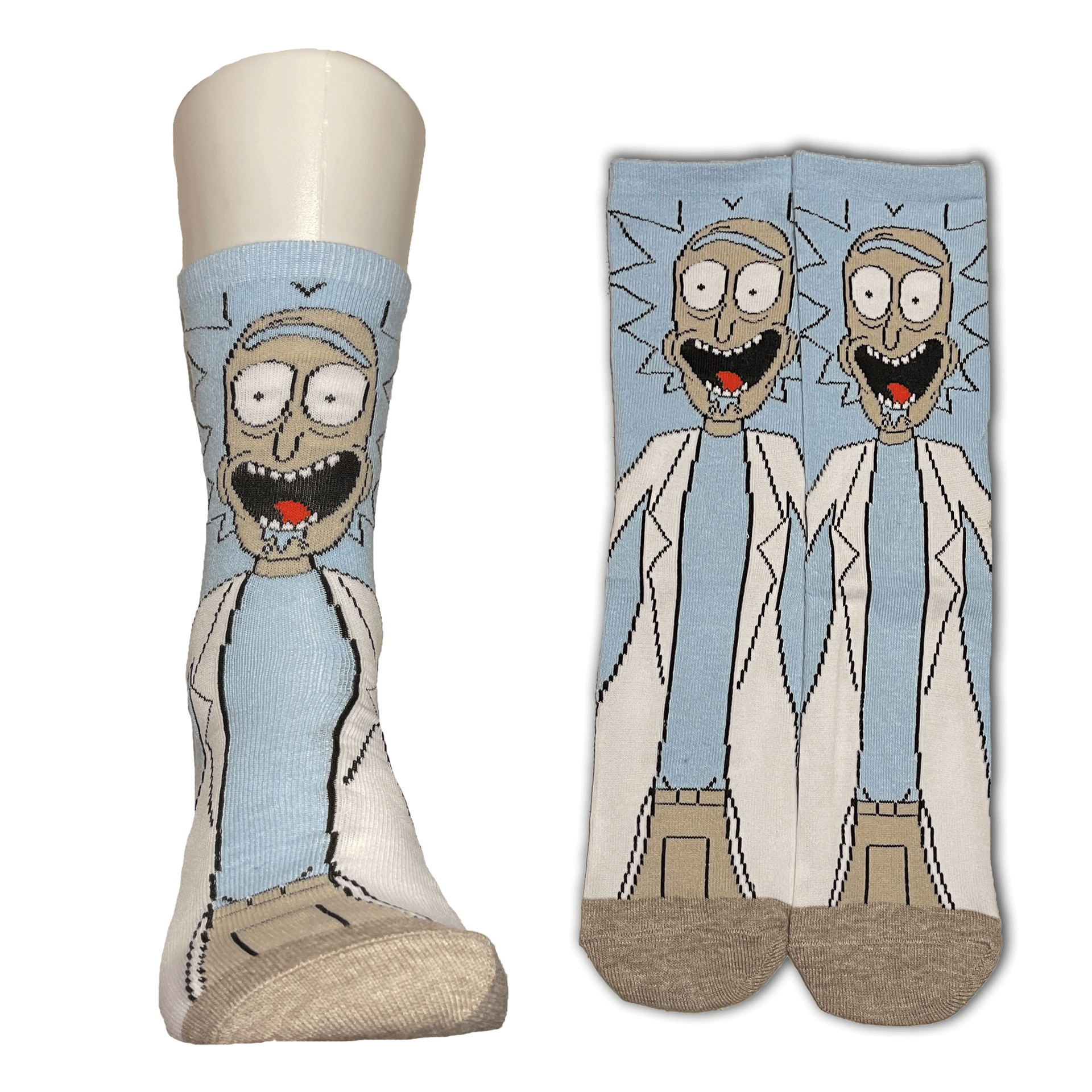 Wubba Lubba Dub Dub! High quality blue cotton socks with Rick on them.