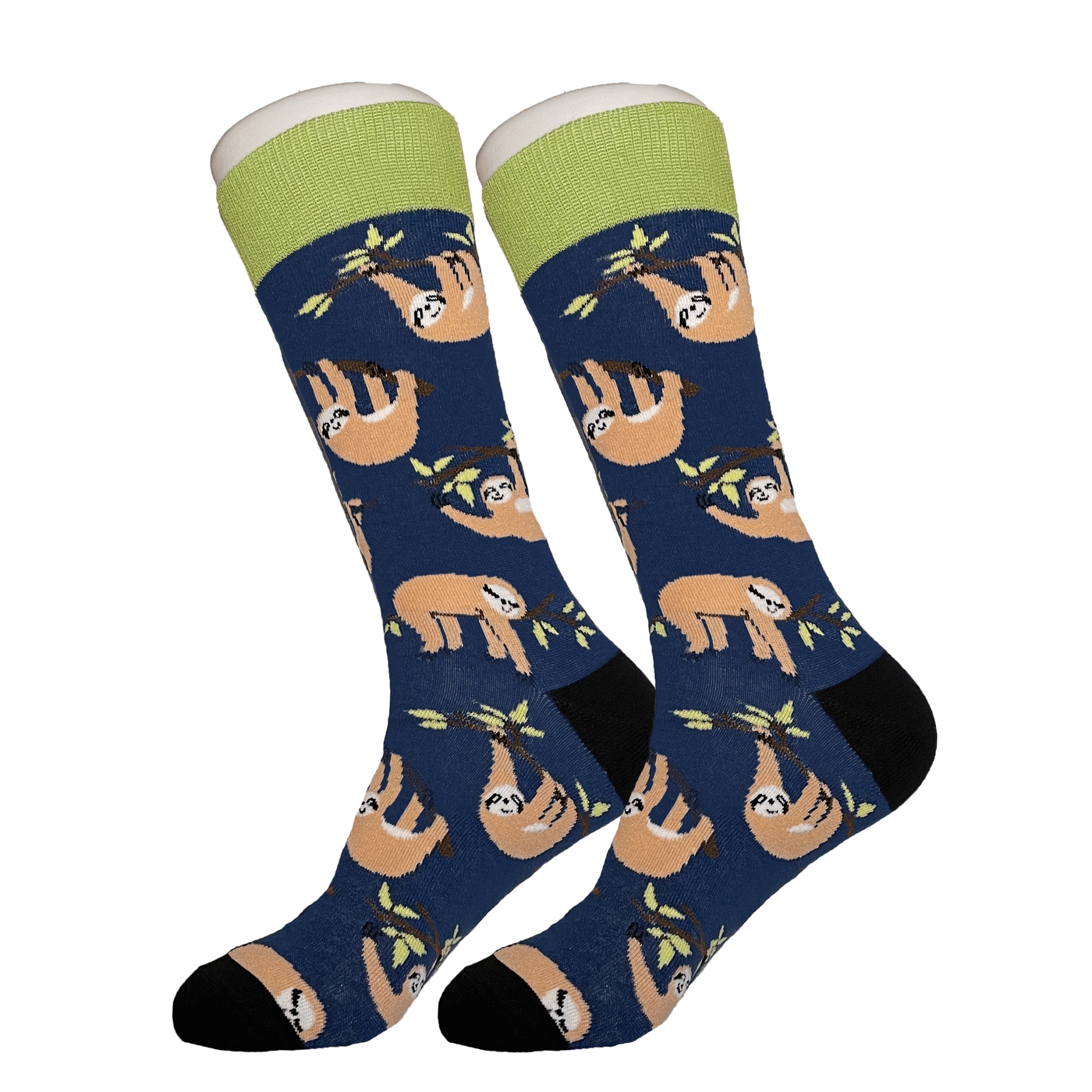 Eat, sleep, nap, repeat. High quality blue cotton socks with sloths.