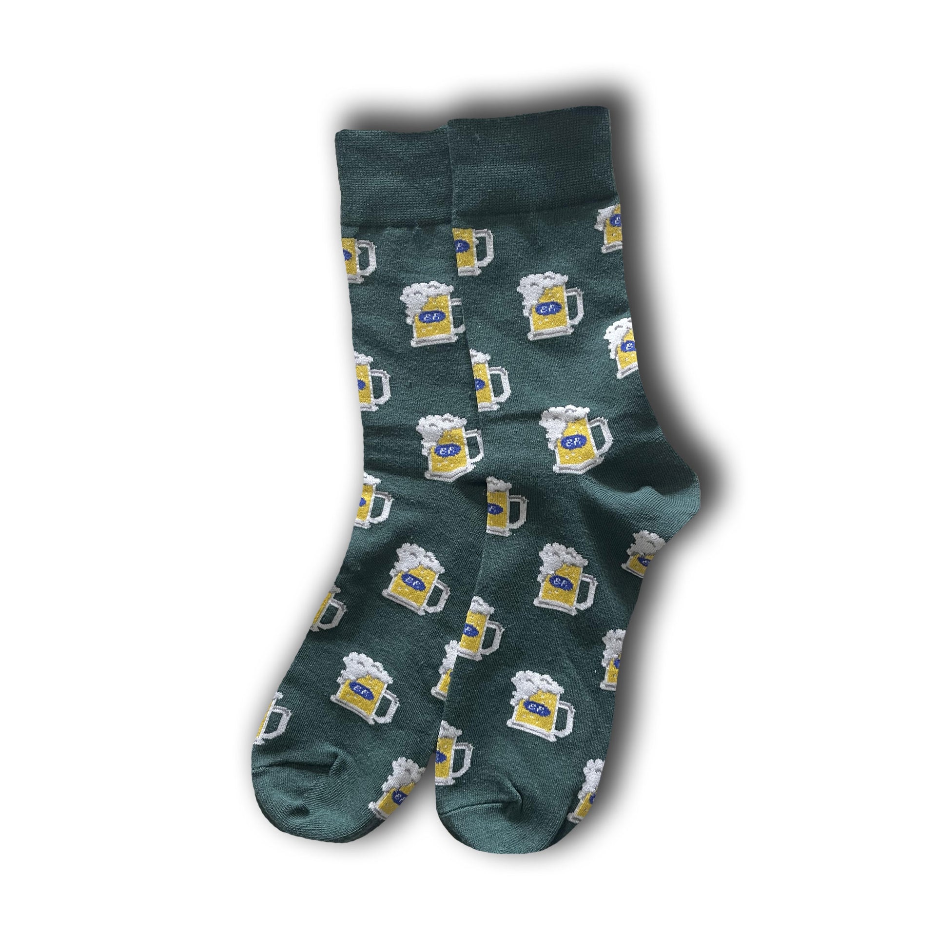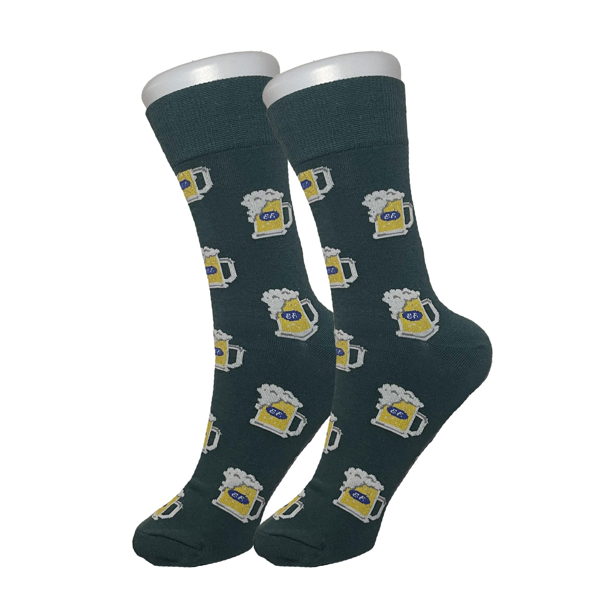 High Quality green cotton socks with beer on them.