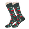 High quality green cotton novelty socks with Christmas Trees and Red Cars on them.