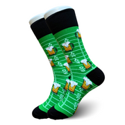 Score a touchdown with these quirky Green Football and Beer Socks! Made for sports and beer fans alike, these socks will have you feeling like you're in the end zone with every step. Perfect for game day or any day (just don't spill your beer!).