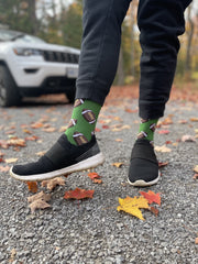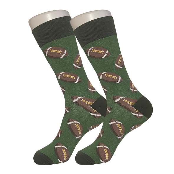 High quality green cotton socks with footballs on them.