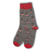 High quality grey cotton socks with Canadian Beer bottles on them.