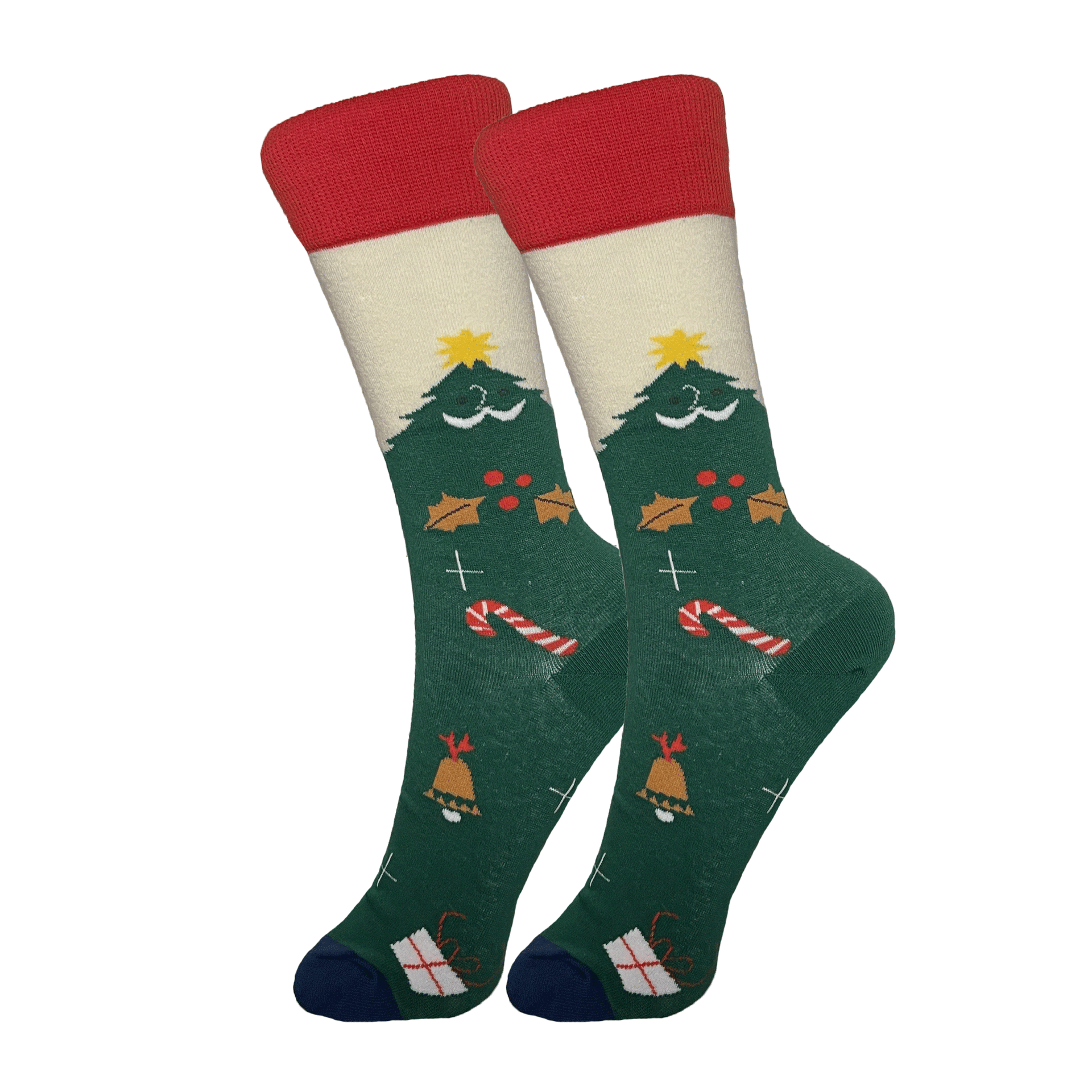 High quality green cotton socks with Christmas Trees on them.
